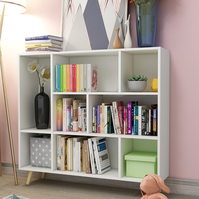 西藏包邮落地书柜书架 三层八格储物收纳书橱展示柜 实木腿书架子热门设计联盟服务商