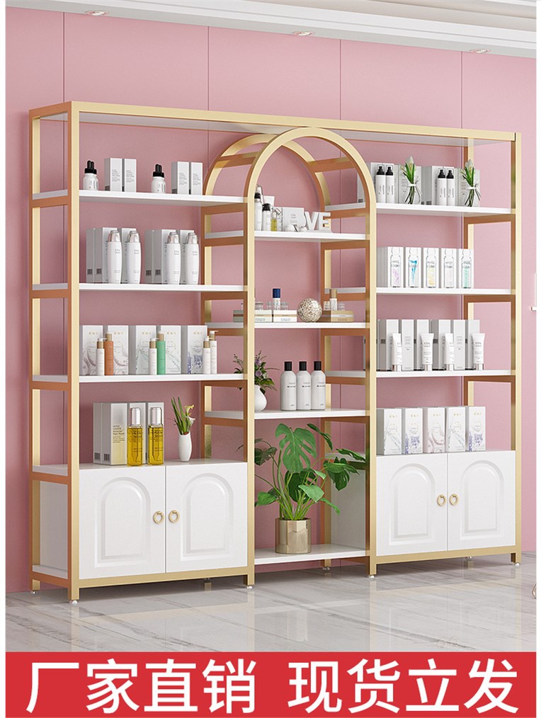 轻奢美容店展示架化妆品展示柜精品陈列架店铺置物货架饰品架多。热门设计联盟服务商